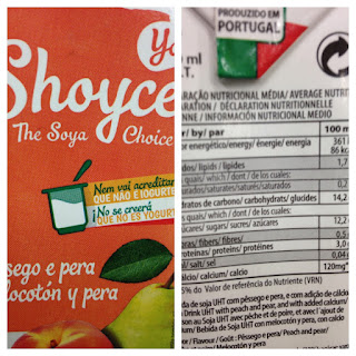 Não é propriamente light, cada embalagem tem 172 calorias e 24,4gr de açucar (sempre alimenta o cérebro! :p) - dados da embalagem. É vegan (claro!), livre de lactose e a soja não é geneticamente modificada (non-gmo). Ahhh e é produzido em Portugal!!!